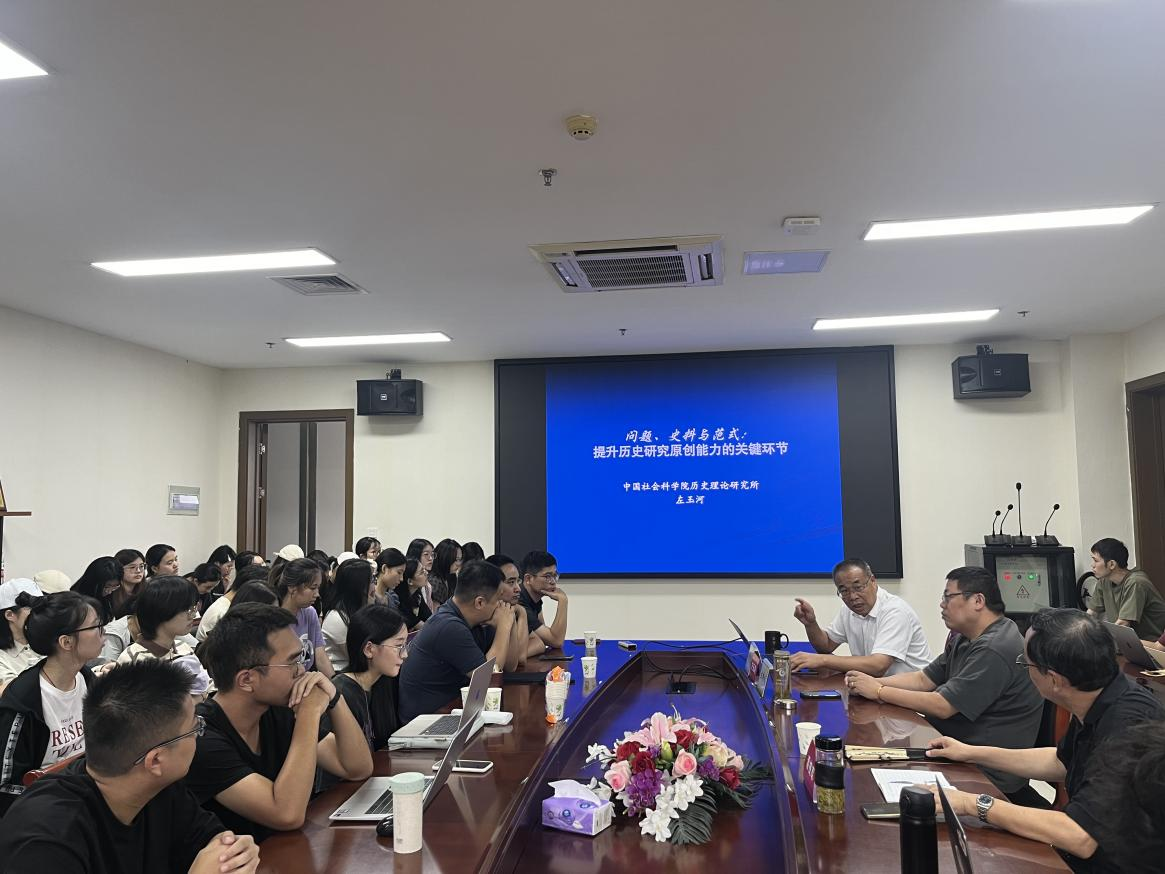 2024年9月21日下午,小黄书 太炎讲堂系列讲座在恕园23号楼312会议室召开,中国社会科学院历史理论研究所副所长、博士生导师左玉河老师受邀作题为“问题、史料与范式:提升历史研究原创能力的关键环节”的讲座,历史学系周东华教授担任主持人。小黄书 历史学系林航、琚小飞、任虎等老师和众多学生参加,共同聆听了这场学术盛宴。