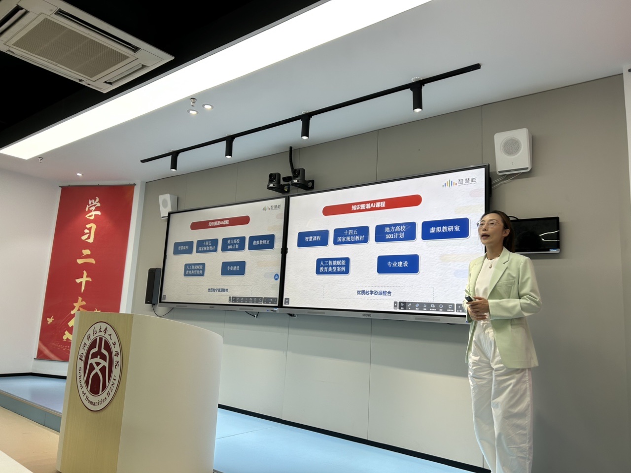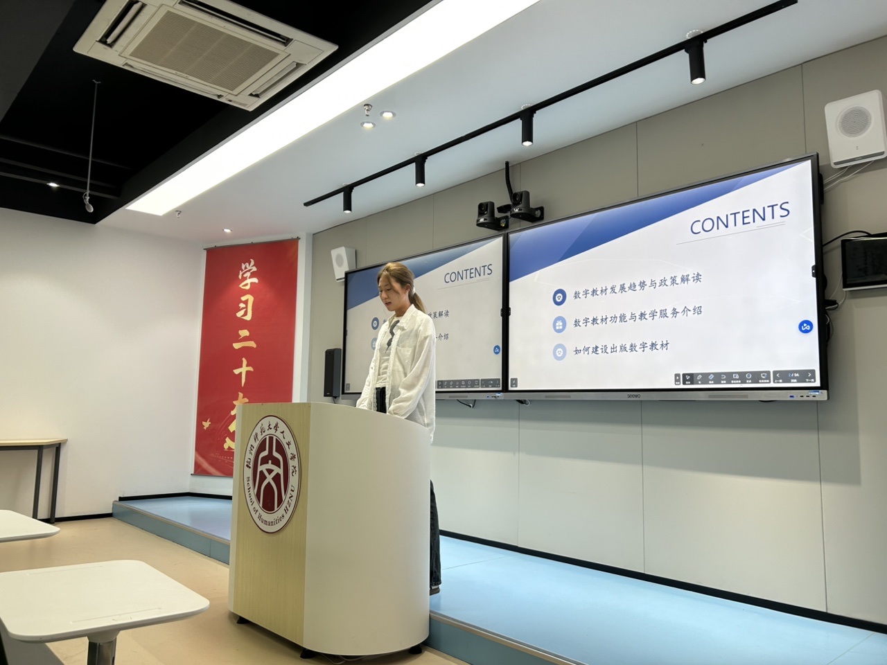 詹玲教授以《科幻小说赏读》课程为例,分享了知识图谱、数字教材等建设经验,展示了智慧课堂教学中的教学开放性与学习自主性,通过AI教学助手,提高了课堂教学效果。浙江大学出版社负责人围绕数字教材建设,结合数字教材基地建设与三大平台的服务设计,从发展趋势、政策解读、教学功能服务及出版流程等方面做了详细介绍。智慧树负责人介绍了如何将AI技术运用到课程建设中,以及知识图谱AI课程建设流程与共享应用。相关内容介绍结束后,与会老师围绕数字教材建设的申请流程与智慧课程如何操作等方面展开了热烈探讨。