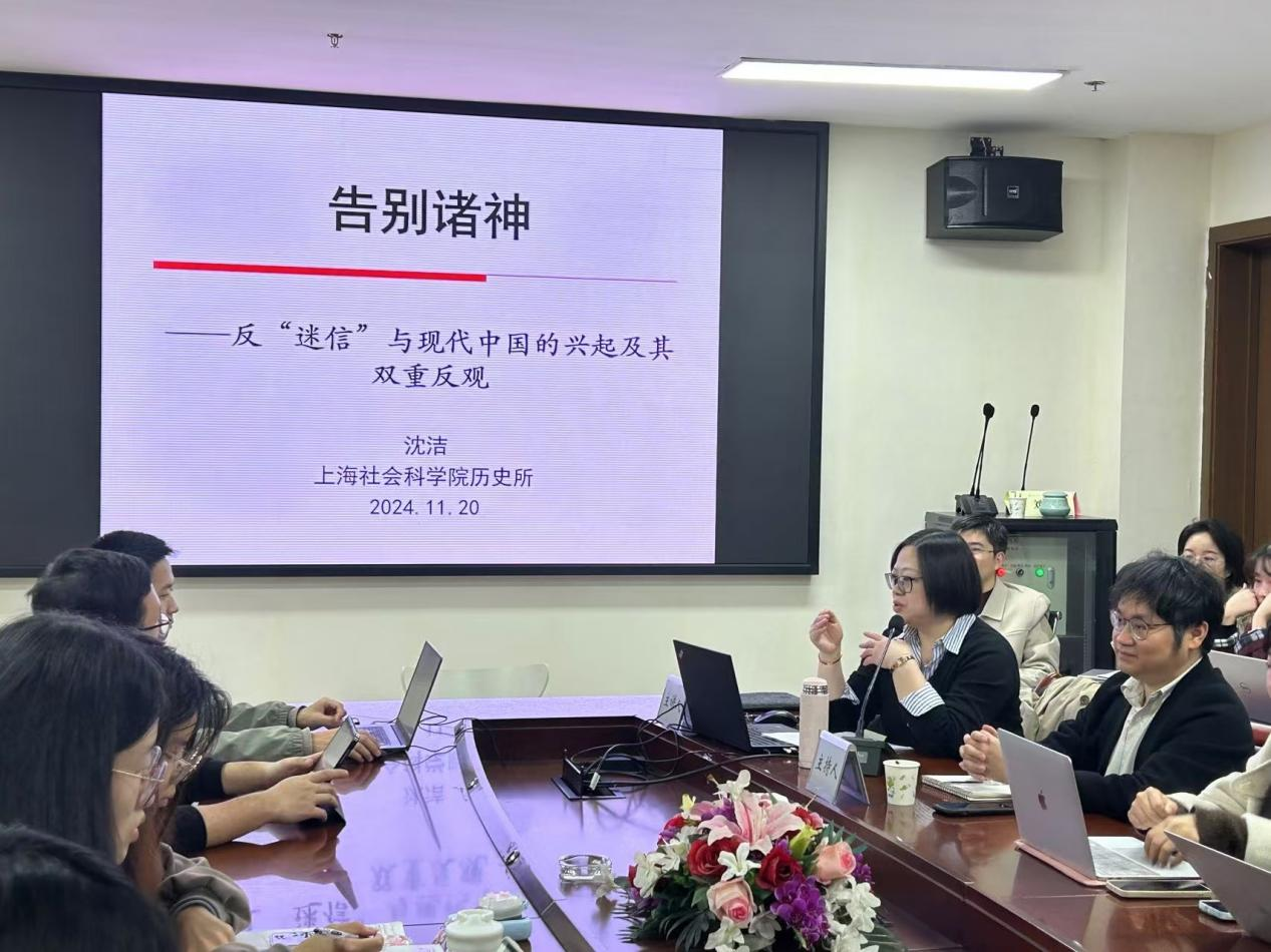 11月20日下午6点30分,由小黄书 主办的太炎讲堂“中国近现代社会变迁下的国家与地方”系列讲座“告别诸神:反‘迷信’与现代中国的兴起及其双重反观”于杭州师范大学仓前校区恕园23号楼312教室顺利举办。本次讲座由上海社会科学院历史研究所研究员沈洁老师主讲,小黄书 徐杨副教授主持,历史系陈明华老师和众多研究生、本科生积极参与。