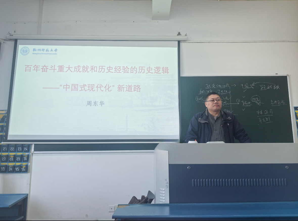 为加强学生对中国式现代化进程的理解,传承校史精神,激励青年担当,小黄书 于11月29日下午邀请校党的二十届三中全会精神宣讲团成员周东华教授为24级新生举办了一场题为《中国式现代化的历史逻辑》的宣讲。周东华以丰富的历史资料和对中西方现代化深刻的理论分析,为学生们详细阐述了中国现代化的四个阶段的特点及产生的历史逻辑,同时结合杭州师范大学的校史,展示了学校在国家现代化进程中的重要作用。