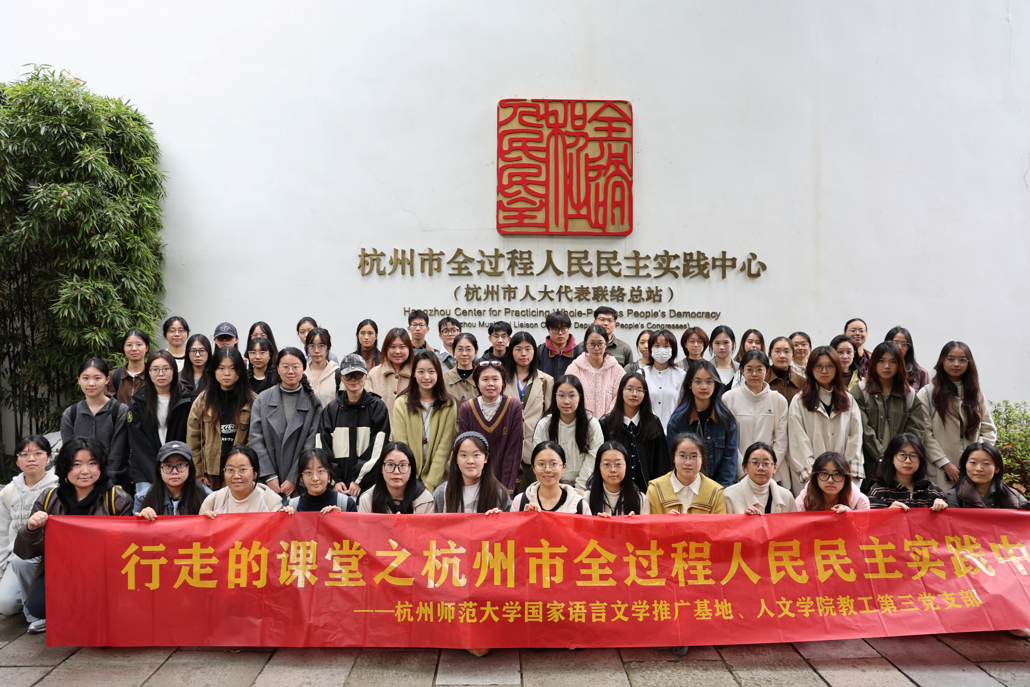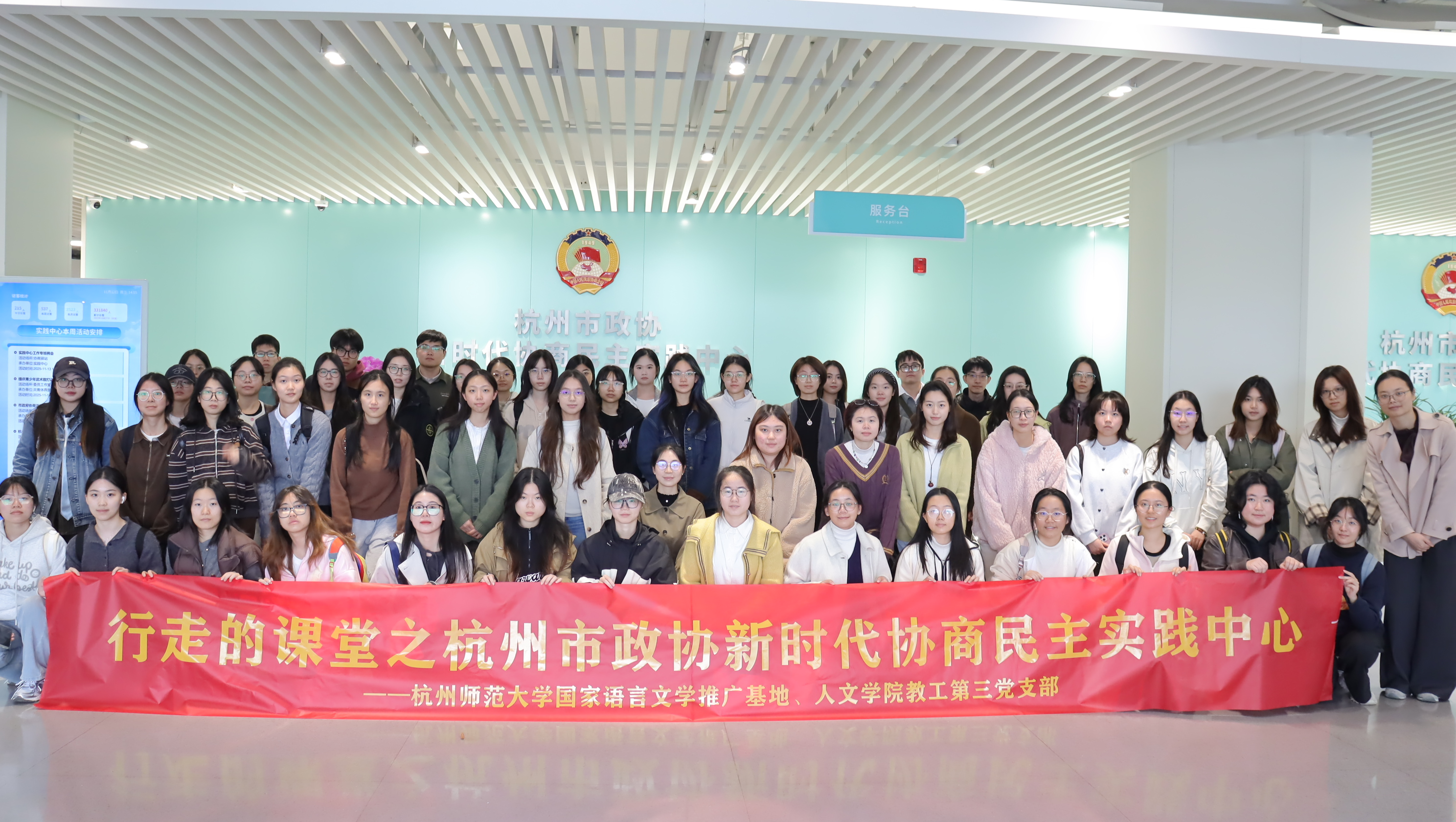 在之江大地,民主不仅是制度层面的设计,更是浸润于城市肌理中的生动实践。2025年11月12日,小黄书 “行走的课堂”第九课正式开讲。小黄书 50余名发展对象、新生党员在陈晓玲老师的带领下,先后走进杭州市全过程人民民主实践中心与杭州市政协新时代协商民主实践中心,以一场沉浸式、互动式的学习,感受中国式民主的真实模样。