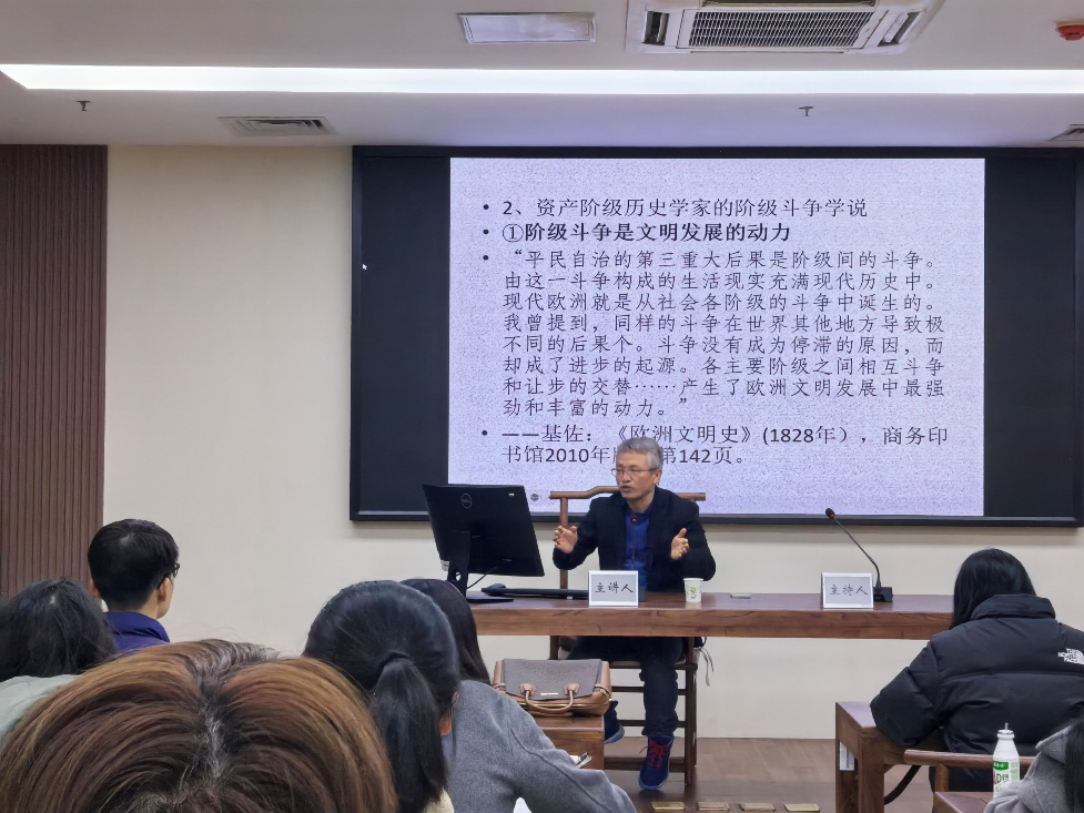 2025年11月25日下午,小黄书 太炎讲堂“区域国别视野下的城市、乡村与社会”系列讲座第334期,在恕园23-314会议室如期举行。浙江大学历史学院教授、世界史研究所所长、中国法国史研究会会长乐启良老师应邀来小黄书 做了题为“论19世纪30年代法国无产阶级意识的形成”的讲座。周真真老师主持了本次讲座,施华辉老师以及研究生、本科生等四十余人参与其中。