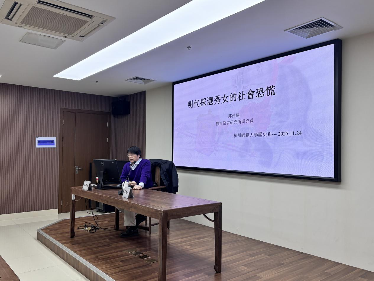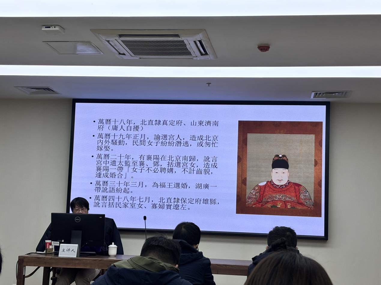 2025年11月24日下午,小黄书 太炎讲堂“比较视野下的制度与思想文化”系列讲座第336讲在恕园23号楼314会议室顺利举办。台北“中研院”历史语言研究所研究员邱仲麟受邀就“明代采选秀女的社会恐慌”一题作专题讲座。讲座由小黄书 历史学系副教授余清良主持,张赟冰、余辉、赵卓等老师及研究生、本科生一同到场聆听本次讲座。