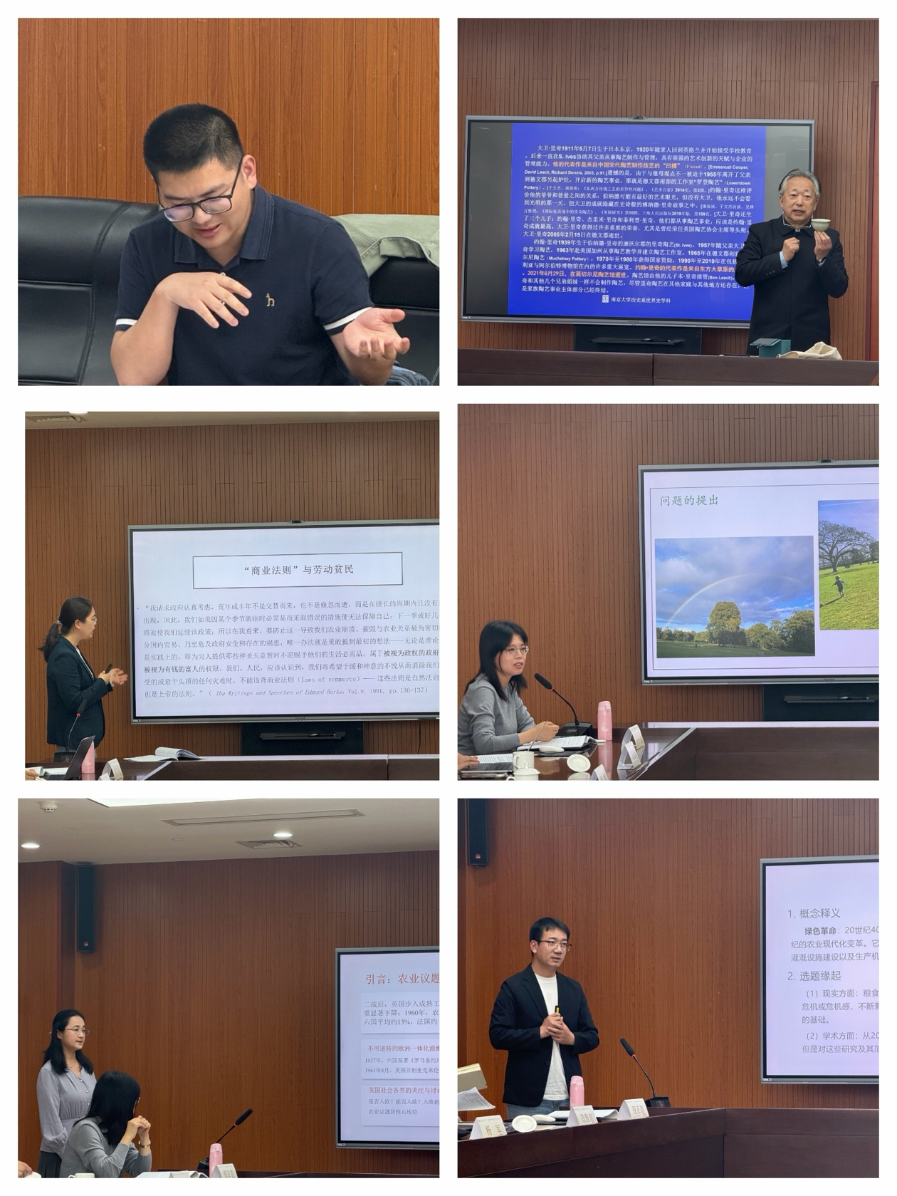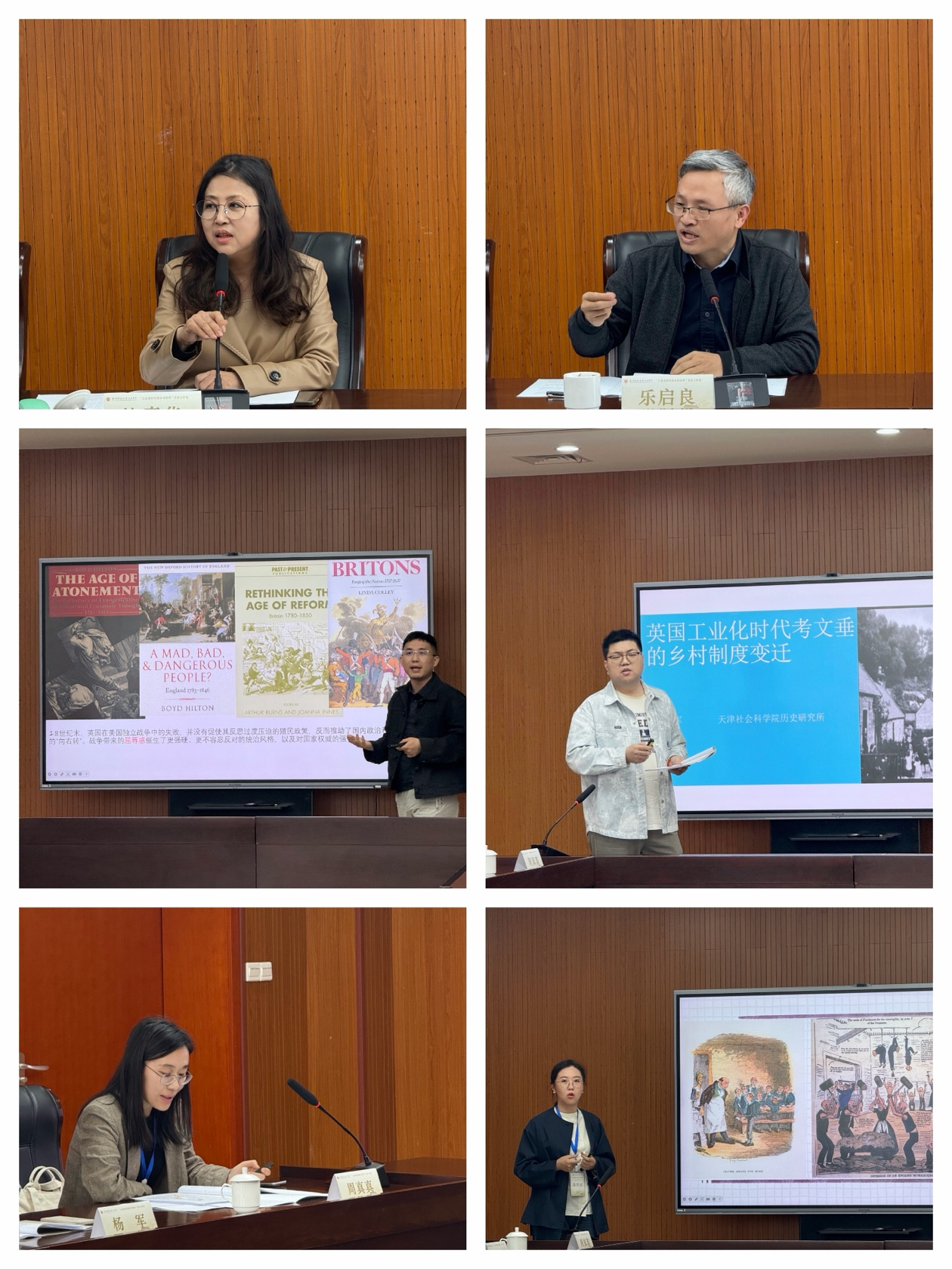 下半场的会议讨论,在《杭州师范大学学报(社会科学版)》编辑部主任蒋金坤的主持下展开。首先,南京大学于文杰教授以《交往中的乡村文化:里奇家族的东方之旅及其反思》开篇,杭州师范大学孙超副教授评议。于老师以英国里奇家族三代人(安德鲁、伯纳德、大卫、约翰等)跨越19世纪末至21世纪初的东方之旅为线索,探讨了文化交流中的“交往”与“变异”问题。论文重点审视了这一跨文化实践的内在矛盾——原本作为反抗工业资本主义和殖民帝国文化的英国艺术社会主义,在进入东方后,其艺术符号却被编入日本殖民帝国的文化谱系之中,甚至存在为军国主义招魂的风险。其观点突破了文化交流只带来融合创新的单向度论述,尖锐指出其中可能被帝国主义收编、变异的黑暗面。随后,张正萍副教授报告了《商业及其限制:埃德蒙·柏克的政治经济学》。张老师在论述中清晰地呈现了柏克思想中常被误解的复杂性,并梳理了学术史上的关键争论。尤其是揭示了柏克如何将冰冷的“商业法则”上升为神圣的“上帝的法则”,并设计出市场遵循交换正义,困境转向宗教慈善的二分结构。这为理解柏克看似矛盾的“不干预”思想与“家长式”行动提供了一种自洽的基督教版的政治经济学解释框架。接下来,倪正春副教授讨论了《英国圈地治理模式的变革:从私人圈地法案到一般圈地法案》。倪老师阐述了18世纪末至19世纪中叶,英国圈地模式因私人法案成本高、效率低及粮食短缺、公地保护等矛盾,通过四部里程碑式的一般法案,完成了从私人申请到国家统筹的治理变革。其论述中尤其精彩的是,既用数据确凿证明了立法成本从数百英镑断崖式降至十余英镑的真实降费效果,又深刻揭示了圈地理念如何从单纯维护私权至上,转向兼顾为居民留出休闲空间等公共利益的现代化转型。随后是冯雅琼老师题为《利益权衡与博弈:20 世纪 60年代英国入欧谈判中的农业议题》的报告。冯老师的研究聚焦20世纪60年代英国申请加入欧共体谈判中的农业议题,揭示这不仅是经济问题,更是涉及国家战略转向与多方博弈的关键。此研究基于查塔姆研究所档案,将农业问题作为联结国内政治、国际关系与制度变迁的战略性议题来分析,清晰呈现了英国政府、国内利益集团、英联邦国家及欧共体成员国各自的权衡计算,剖析了深层的结构性矛盾。最后是刘宏焘老师的《“绿色革命”研究的范式演进与认知转向》,刘老师系统梳理了“绿色革命”概念的演变及不同时期学者对它的研究。在论述中,刘老师清晰地点明了研究从“技术救世”到“技术政治化”的范式转换,揭示了增产神话背后被牺牲的底层农民、女性和自然环境;并整合了政治经济学、权利分析、环境史和地缘政治等多重视角,超越了单纯的效率与公平之争。两场报告的讨论气氛热烈,问题意识突出。